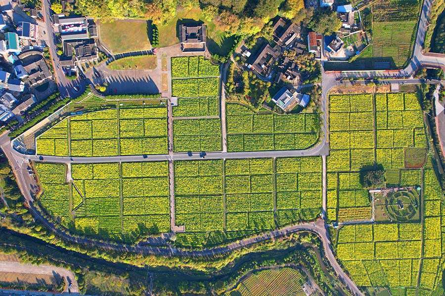 福建省龙岩市上杭县古田会议会址前,百亩油菜花迎春绽放。杨国鑫摄