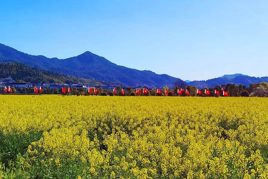 古田会议会址前,百亩油菜花迎春绽放。杨国鑫摄