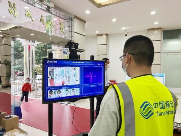 在龙岩,福建移动网络保障人员正在调试“人脸测温监控管理系统”,助力政府单位实现发热症状人员的快速排查。