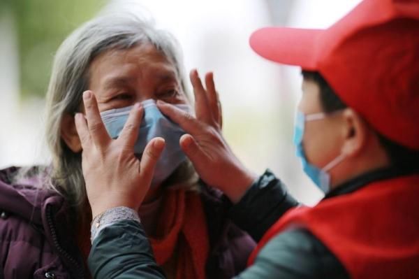 在南平建阳,福建移动志愿者辅助老人们佩戴口罩,浓情服务银发群体。